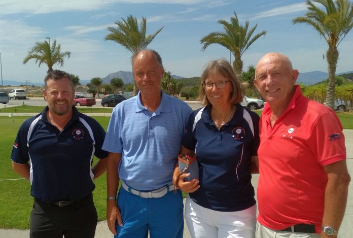 Glorious sunshine and a cooling breeze made for perfect golfing conditions at Vistabella for the 40 members and 4 guests. With the relatively new seven holes still “bedding in”, those opting to use buggies had to stay off those fairways.