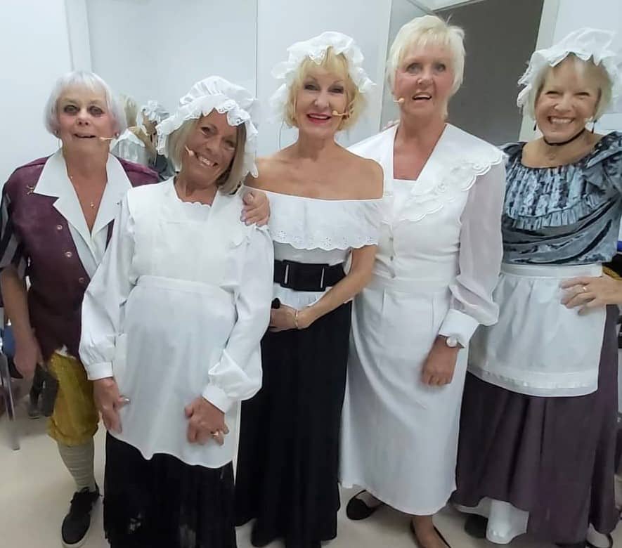 From the Admiral Benbow pub to the Smugglers Cover WI, who found themselves press ganged into becoming pirates . When a gang of dastardly pirates, dressed in pink tutus, visited the WI to try and get the treasure map, and won the cake baking competition! Then on board The Hispaniola on it’s way to Treasure Island where the whole cast were in a race to find the hidden treasure, but where had it gone?? The whole pantomime was fun, fun, fun.