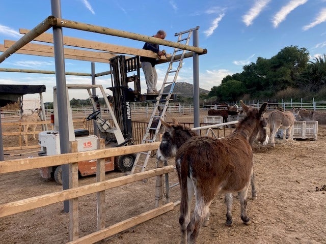 16,800€ is the New Year target for Easy Horse Care Rescue Centre. For some months now the rescue centre, based in Rosales, has been working hard on their next project to provide and build shelters on site. Not only will these provide better facilities for the animals in their care but it is a necessary requirement for the centre to be able to obtain their farm licence which will be a game changer for the future of Easy Horse Care. Founders Sue and Rod Weeding have been doing much of the work themselves on building the shelters and this will continue but Sue explains that as the New Year approaches they are reaching a tight deadline. Sue explains: “We have a quote of 16,800€ for all the materials which we have been fundraising for but we have now been informed that building materials are expected to sky rocket in price in 2023 and so we desperately want to get all materials before this happens.”