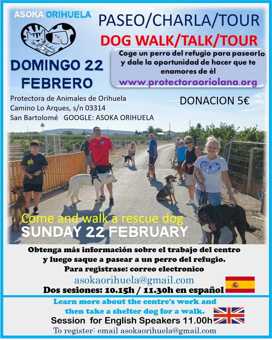 The animal welfare charity Asoka Orihuela, which manages the municipal animal shelter in Orihuela, is bringing back its popular “Solidarity Walks” to help rescue dogs find loving homes.