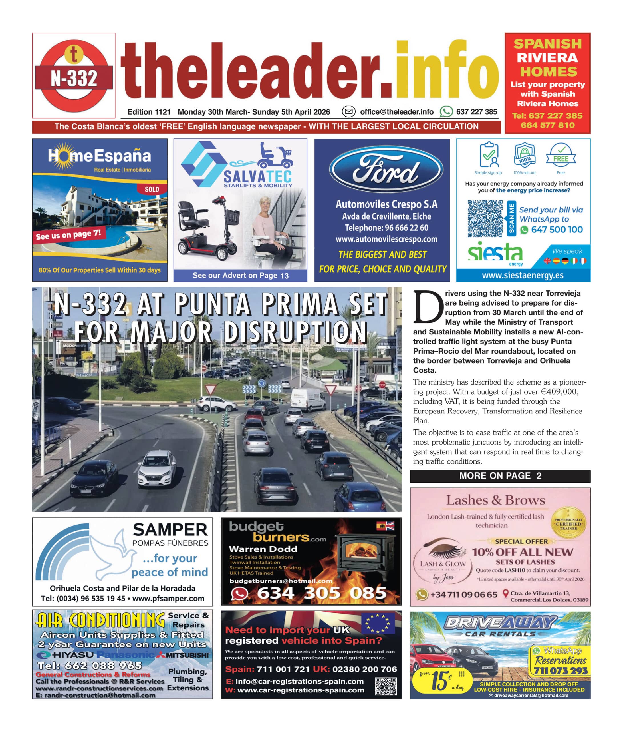 Home Spain Community of Valencia Edition 1121 of The Costa Blanca and Costa Calida Leader Newspaper 29... The only publication you need for the latest English-language news, sport and events from across Torrevieja, Orihuela Costa, Pilar de la Horadada, Mar Menor, Quesada, Guardamar and La Marina. SpainCommunity of ValenciaLocalCosta BlancaProvince of MurciaCosta CalidaEditor PicksHeadlineInternationalNewsMediaMembers OnlyPeriódico VirtualRegion of MurciaTechnologyVirtual Newspaper Edition 1121 of The Costa Blanca and Costa Calida Leader Newspaper 29 March – 05 April 2026 By Staff Reporter - 29/03/2026 0 Share FacebookXWhatsAppLinkedinReddItEmail Membership Required This content is available to members only. Sign up to unlock access or log in if you already have an account. Sign Up Log In RELATED ARTICLESMORE FROM AUTHOR El Barranco Development Faces Objections as Infrastructure Concerns Grow in Orihuela Costa ZENIA BOULEVARD UNVEILS EASTER EXTRAVAGANZA WITH FAMILY FUN, MUSIC AND FESTIVALS ORIHUELA’S €3.5M CLEAN-UP: New Fleet to Replace Ageing Waste Trucks CANNABIS CLUB CRACKDOWN: Six Arrested as ‘Fake’ Associations Busted on Orihuela Costa ELCHE’S NATIONAL POLICE COMMANDER AT CENTRE OF SAN FULGENCIO ‘TIT-FOR-TAT’ INSPECTION STORM LASER HEIST SHOCK: Man nabbed after brazen shopping trolley raid at mall games venue Joint Police Operation Nets Interpol Drugs Suspect In Pilar de la Horadada COCAINE CLAN SMASHED: ‘Risitas’ gang busted in huge drugs swoop — 20 arrested in international trafficking ring Corvera Airport unveils expanded summer routes across Europe and beyond Guardamar plans €5 million marina upgrade to secure extension of concession Ryanair Cabin crew member injured as turbulence hits UK–Alicante flight Las Colinas Golf & Country Club renews partnership to support inclusive football school Sign in Welcome! Log into your account your username your password Forgot your password? Get help Password recovery Recover your password your email A password will be e-mailed to you. LEAVE A REPLY Cancel replyLog in to leave a comment