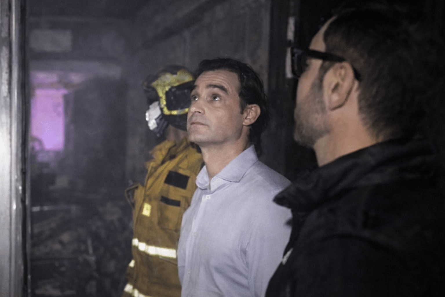Eduardo Dolón was quickly on the scene alongside the Councillor for Emergencies, overseeing the response and supporting affected residents. He remained at the site until the incident was brought under control, speaking with families and monitoring operations.