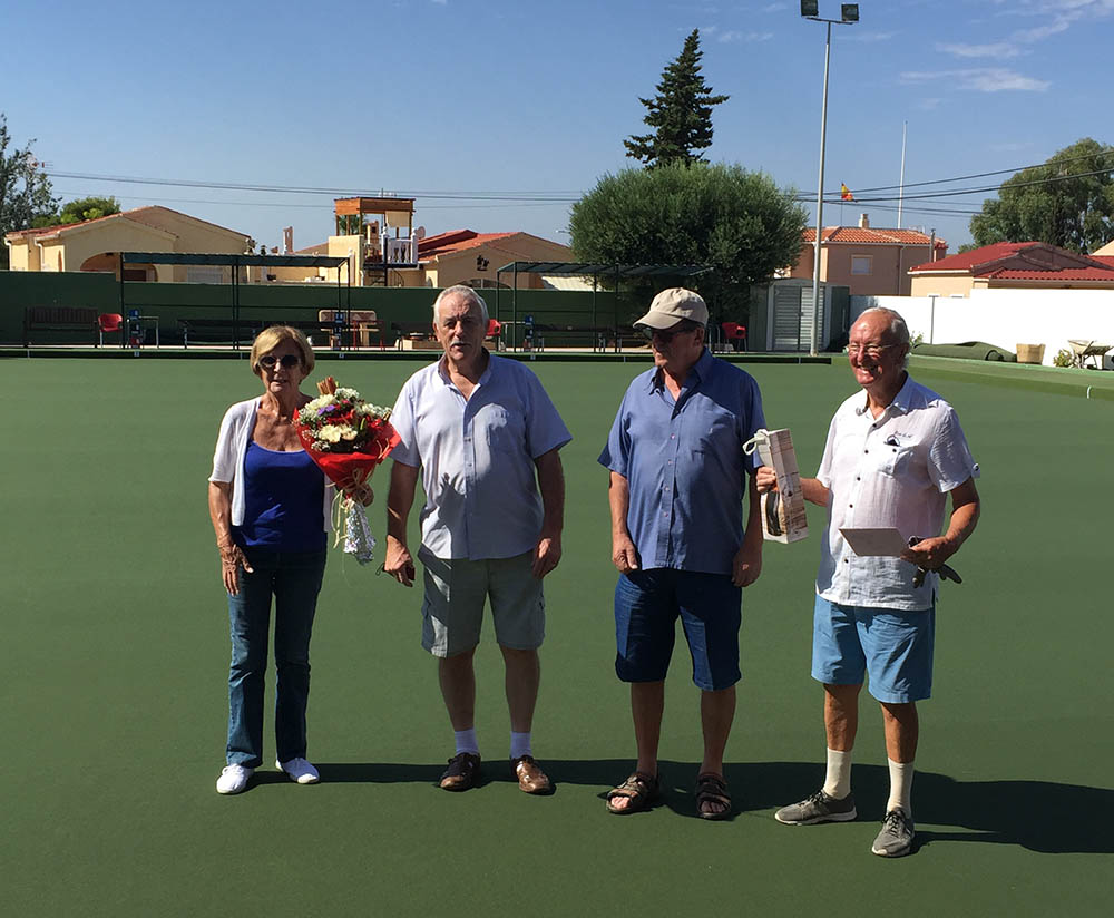 The picture shows Margaret and Alex being presented with flowers and brandy from our president and captain for all the hard work and hours they have put in to facilitate our new green and surrounds especially in this current heat.