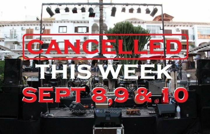 “Here we go again, as due to last week, unfortunately the music for this week is cancelled on September 8, 9 and 10,” said Casey Shaddock, spokesperson and President of Villamartin Plaza.
